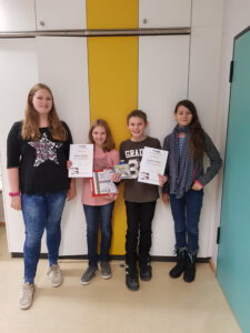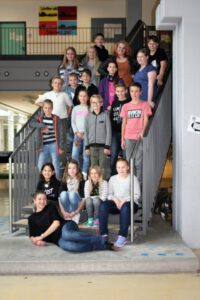 Erst mal unser aktuelles Team, das aus Frau Bundschuh, Chiara, Mayla, Elaina, Emily, Jonas, Tobi, Leonie, Giulia, Alea, Karo und Annika besteht: