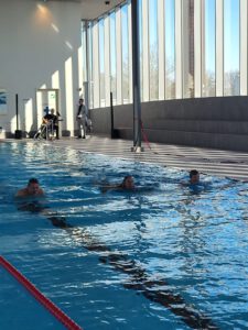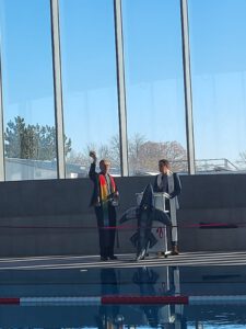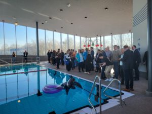 Ja, das geht! Seit Neuestem steht in Schwabmünchen nun das seit langem angekündigte neue Hallenbad „Leonhard-Wagner-Welle“. Frau Luxenhofer, unsere Schulleitung, lud uns ein, mit ihr gemeinsam an der offiziellen Eröffnung teilzunehmen.